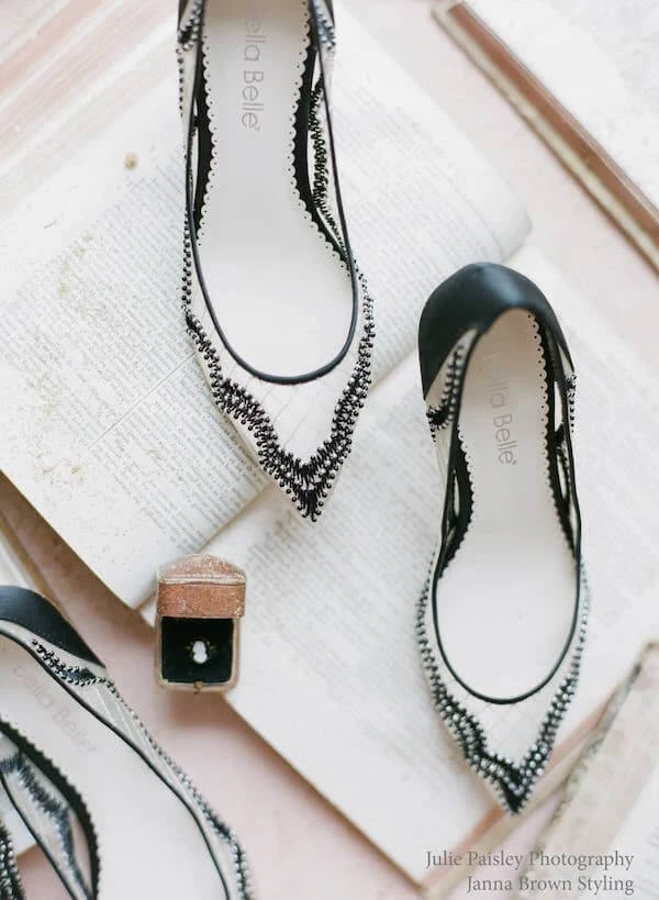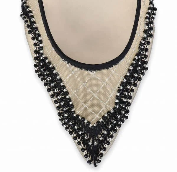 NICOLE Scalloped Embroidered Black Evening Kitten Heels